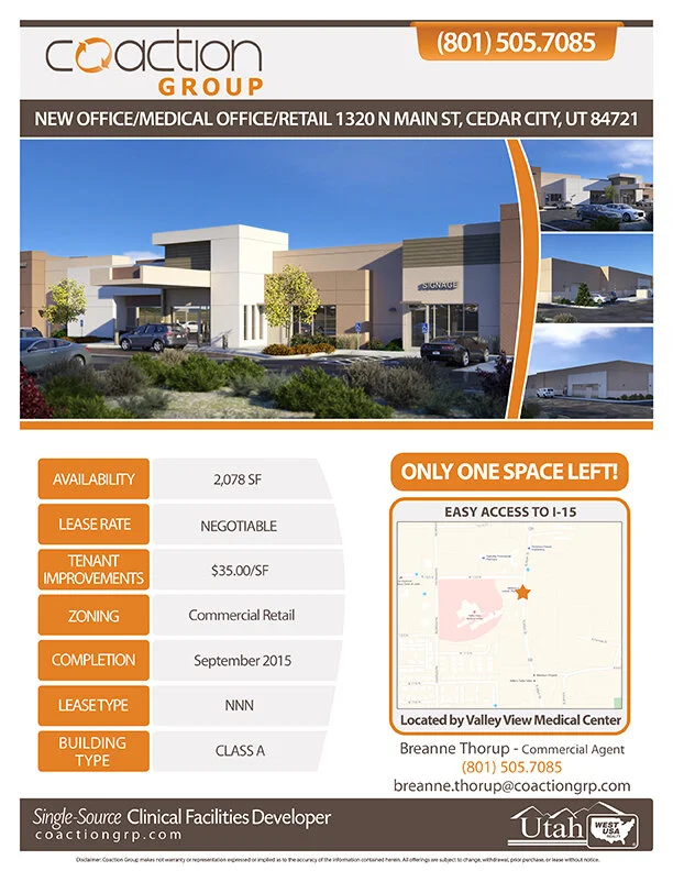 This medical services building contractor hires me to create fliers, banners, and other media for all of their medical buildings that they construct in parts of the US.